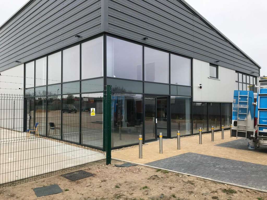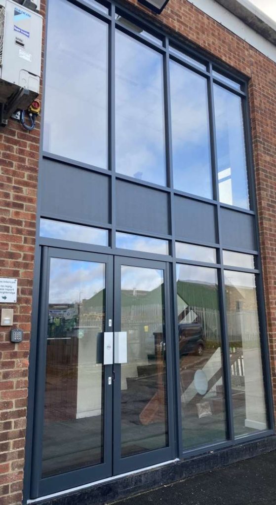 aluminium curtain wall system installed in commercial property Wales