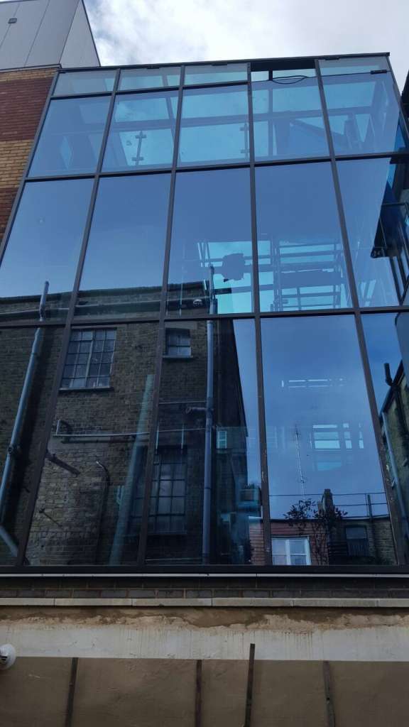 modern glass curtain walling system installed in commercial building Wales